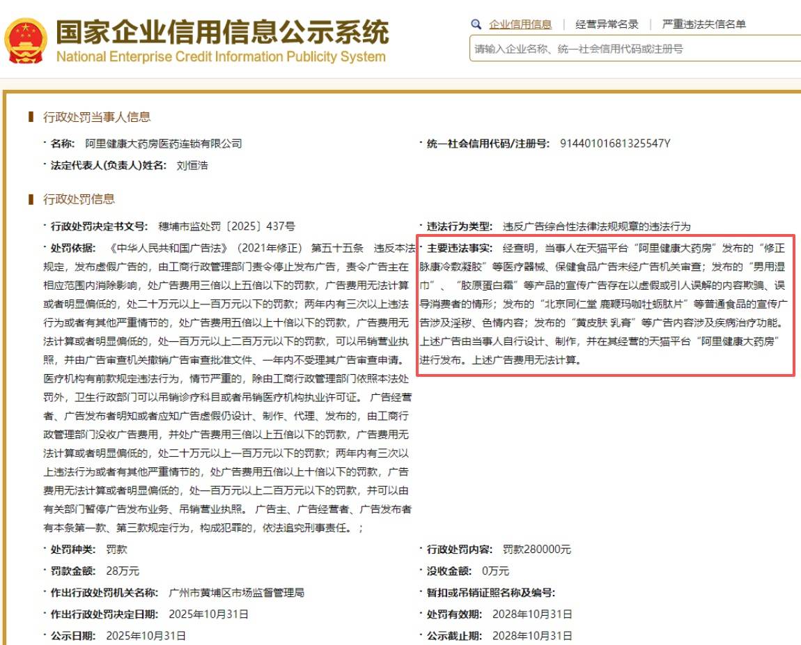 阿里健康大药房涉嫌违反广告法供应商:近来整改多个类目